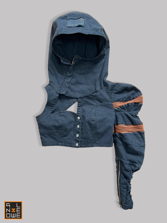 Color Patch-Reconstruct, Heavy Crafted Military Hooded Jacket